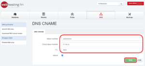Uložením formuláře vytvoříte nový CNAME záznam.