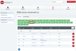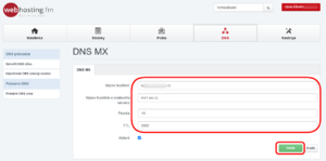 Nad seznamem DNS záznamů zvolte tlačítko MX.