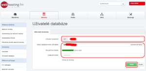 Vytvoření databázového uživatele provedete ve Správě hostingu ISPConfig.